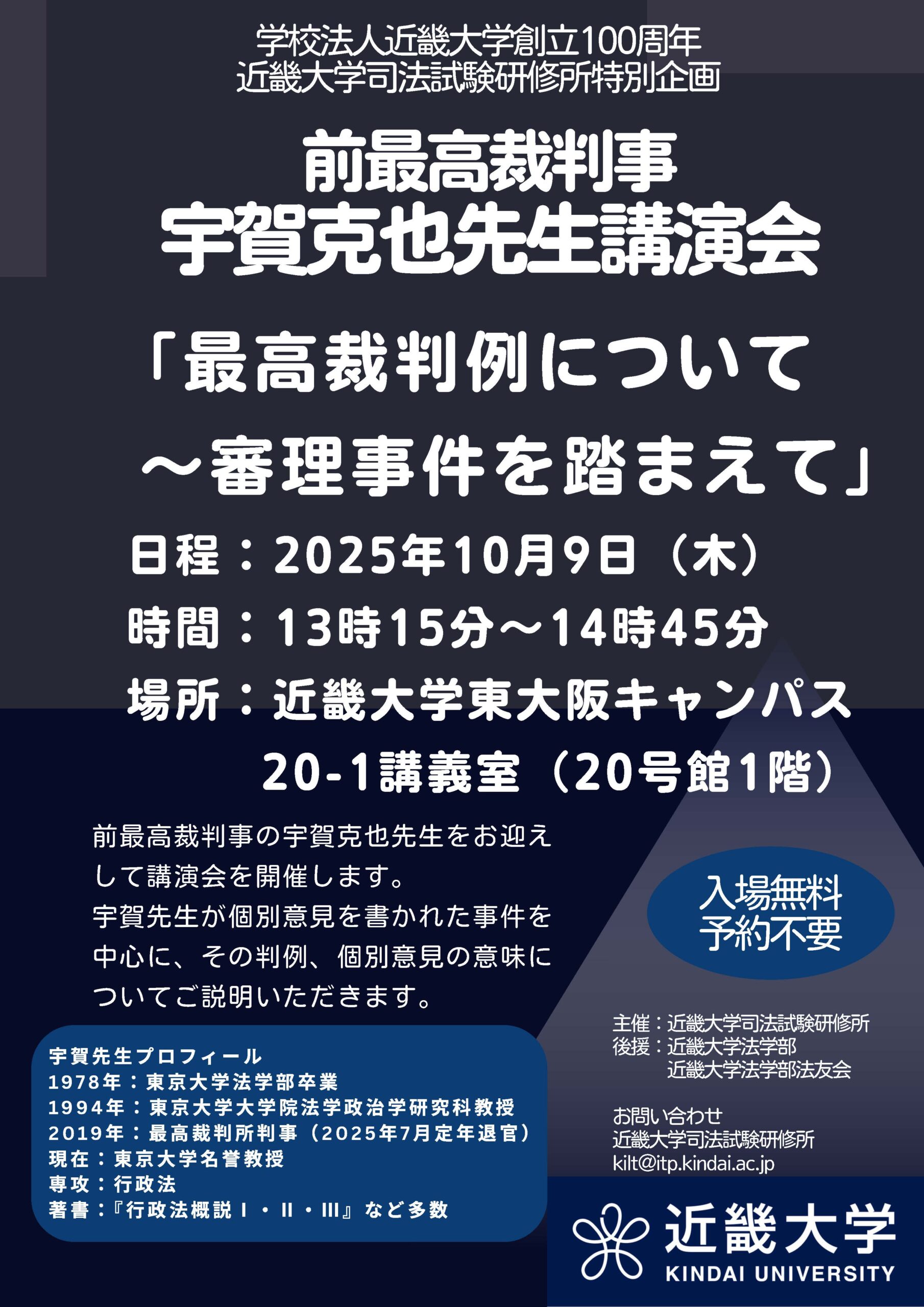 この度、近畿大学司法試験研修所が主催します講演会が開催されます。